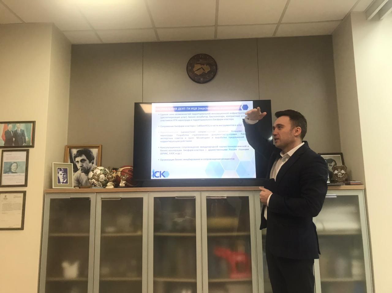 Современные задачи ИЦК, как института развития наукоградной территории, связаны с новыми зонами наукоемкой активности. ИЦК предстоит установить контакты с научно-индустриальными парками, внедренческими зонами, которые в ближайшие годы появятся в Кольцово в рамках разрабатываемого в настоящее время мастер-плана», - отметил Николай Григорьевич Красников.